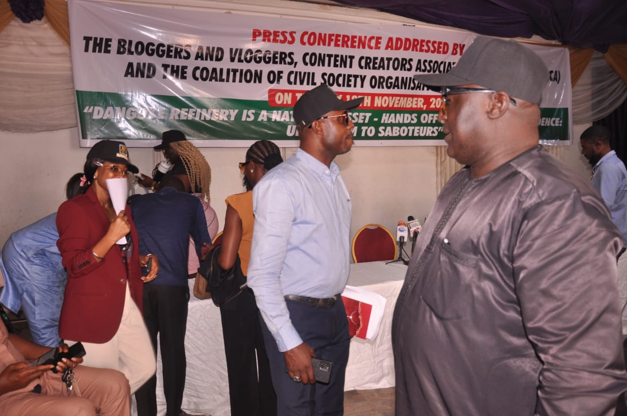 Bloggers and Vloggers, Content Creators Association in Nigeria (BAVCCA) and the Coalition of Civil Society Organisations in Nigeria (COCSON) have sounded the alarm on attempts to sabotage the Dangote Refinery by individuals and entities who are hell-bent on dragging Nigeria back into the dark ages of fuel importation,and artificial scarcity.